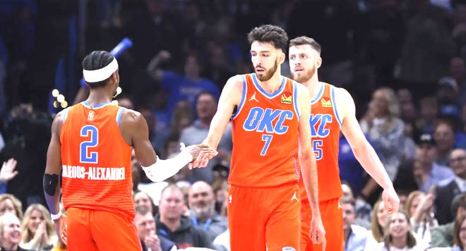 完成技術(shù)升級后,亞歷山大仍保持著頂級得分效率,本賽季雷霆有6場比賽打進(jìn)關(guān)鍵時刻,亞歷山大期間場均能得到9.3分,排在聯(lián)盟第2,真實(shí)命中率61%,凈效率40.6%。“他始終渴望變得更強(qiáng)、贏得更多榮譽(yù),這種強(qiáng)烈的好勝心極具感染力?!标?duì)友卡魯索如此評價亞歷山大。這份自律與刻苦確實(shí)滲透到全隊(duì):霍姆格倫從不在訓(xùn)練中懈怠,其得分提升并非依賴機(jī)會增加,而是投籃命中率足足上漲10個百分點(diǎn);哈爾滕施泰因更是將投籃命中率從58.1%飆升至69.1%,進(jìn)化為禁區(qū)終結(jié)利器。放眼全隊(duì),多數(shù)球員數(shù)據(jù)較上賽季均有提升,這并非單純因杰威缺陣帶來的機(jī)會,而是整體競爭力的真實(shí)進(jìn)步。